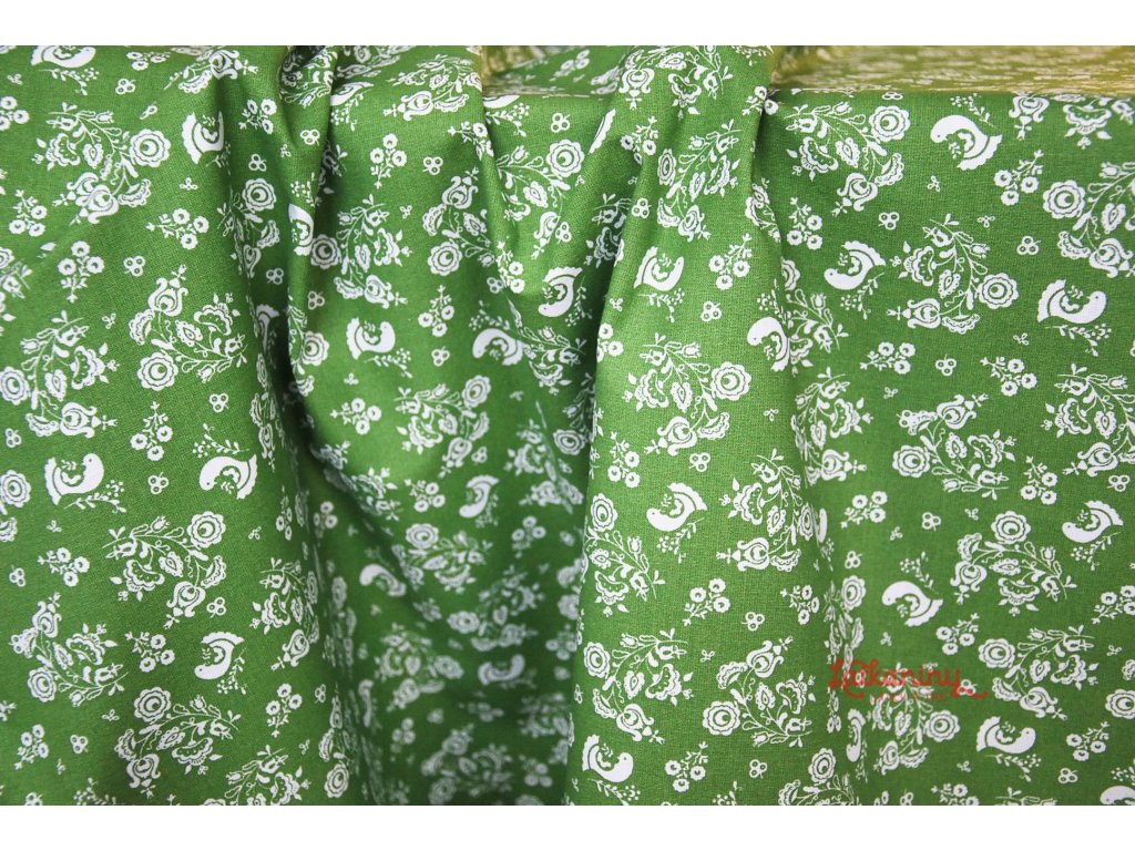 Bavlna folklor motiv ptáčci, zelená