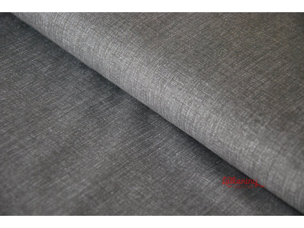 Motivem látky je lněný efekt v šedé barvě. Podkladová barva je bílá.