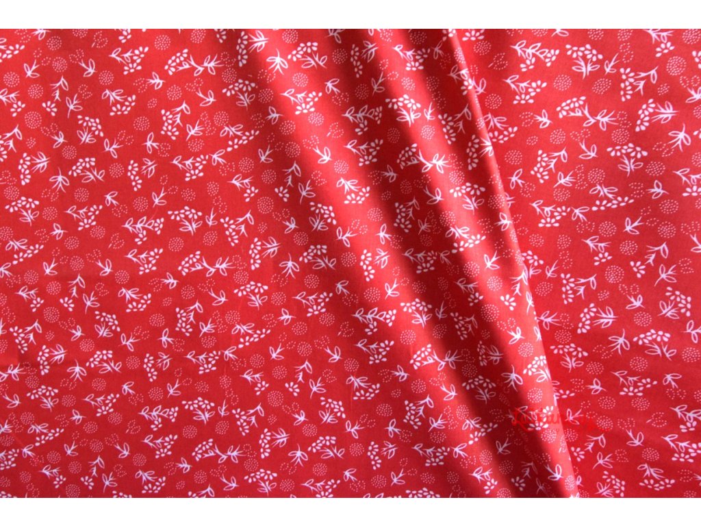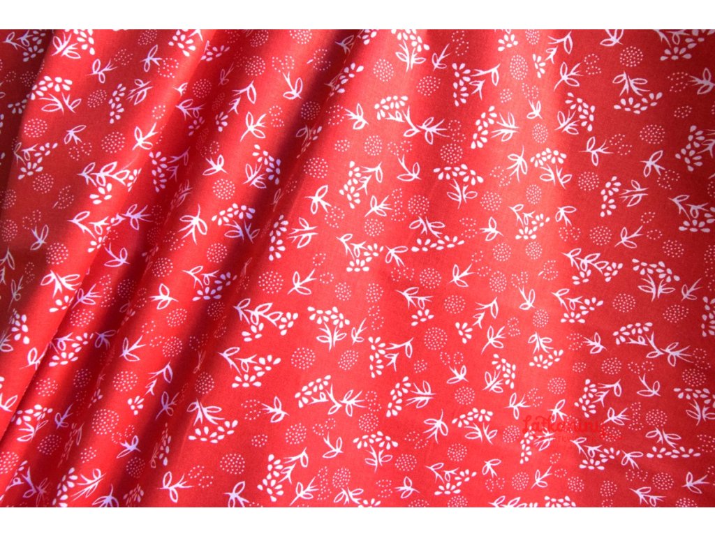 Látka má krásnou sytou červenou barvu a něžný květinový vzor.