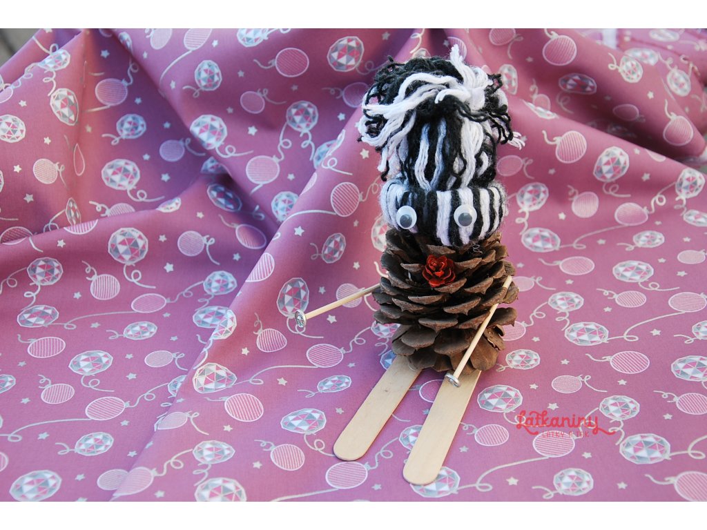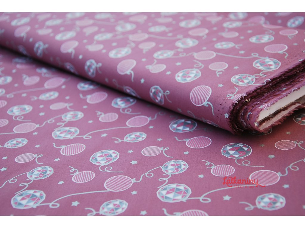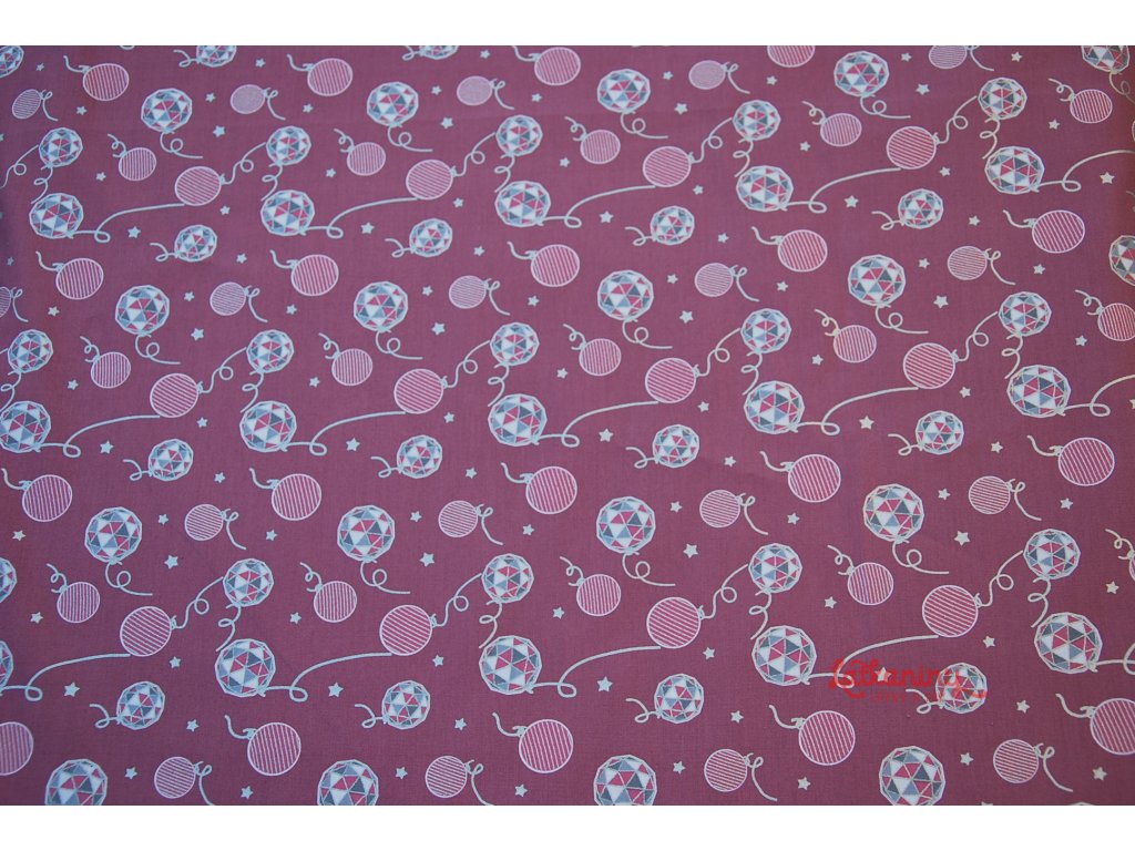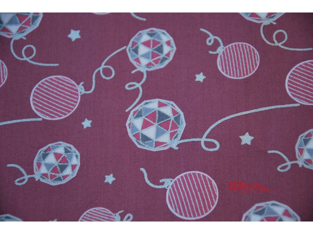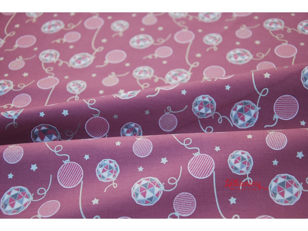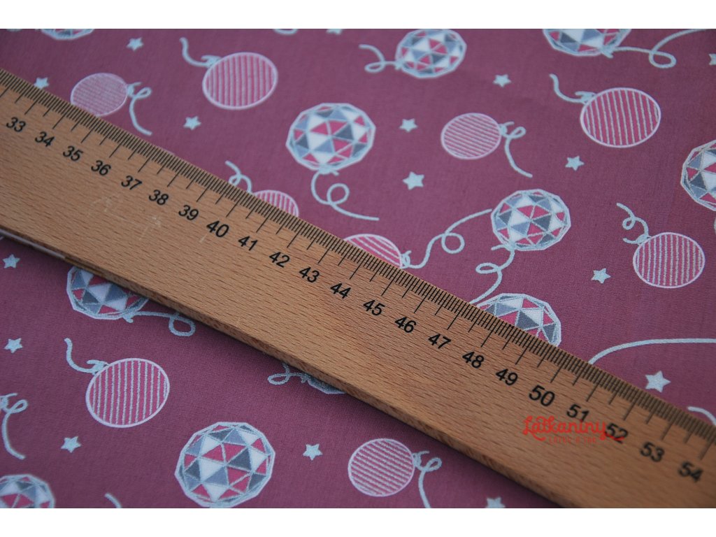 Motivem látky jsou vánoční ozdoby, kouličky na stromeček. Tvoří je růžová, stříbrná, bílá a šedá barva. Podkladovou barvou je růžová, starorůžová.