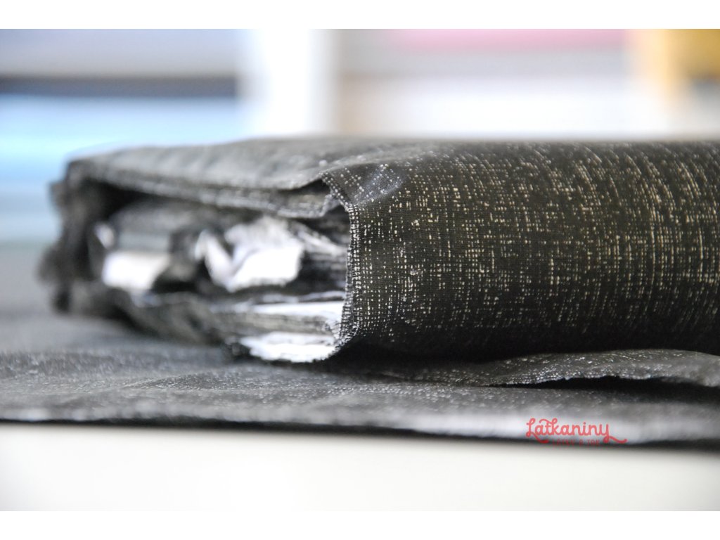Motivem látky je lněný efekt v černé barvě. Podkladová barva je bílá.