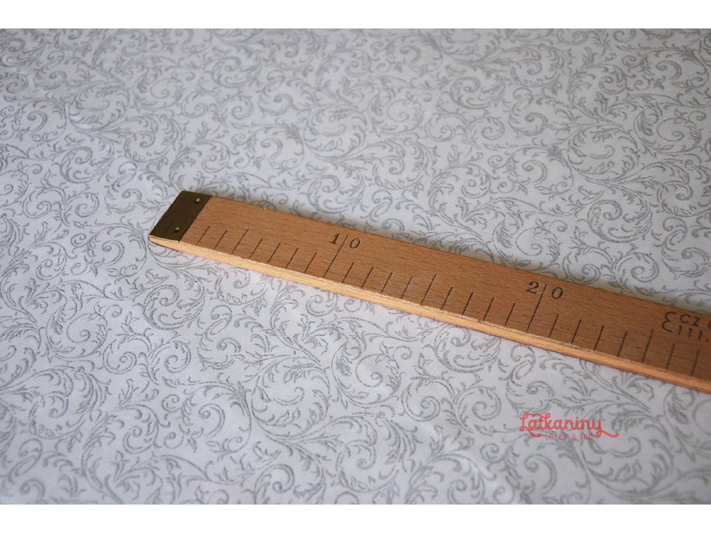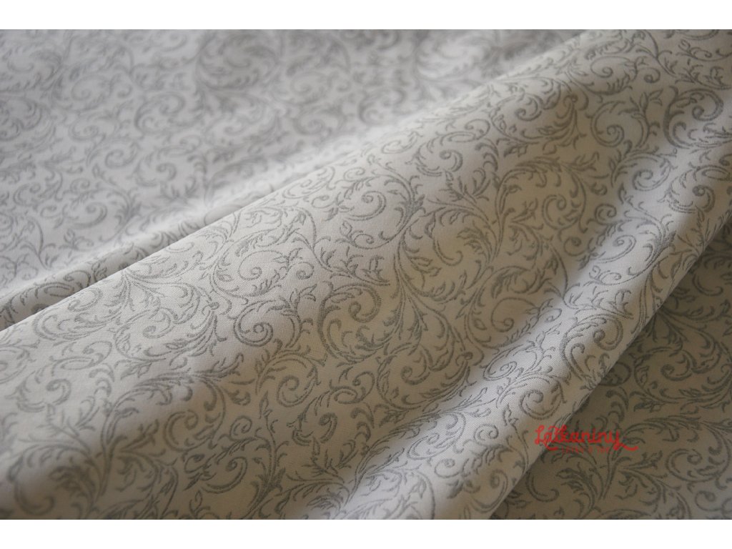 Motivem látky jsou stříbrné ornamenty, které se vinou po čistě bílém podkladu. Látka působí slavnostně a noblesně. Hodí se jak na vánoční bytový textil, tak na tvorbu výrobků určených pro slavnostní chvíle!