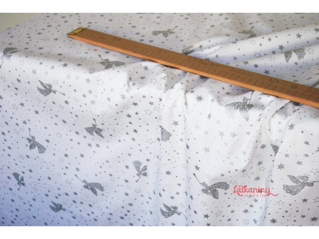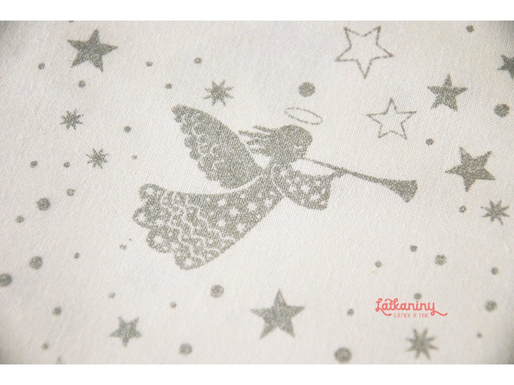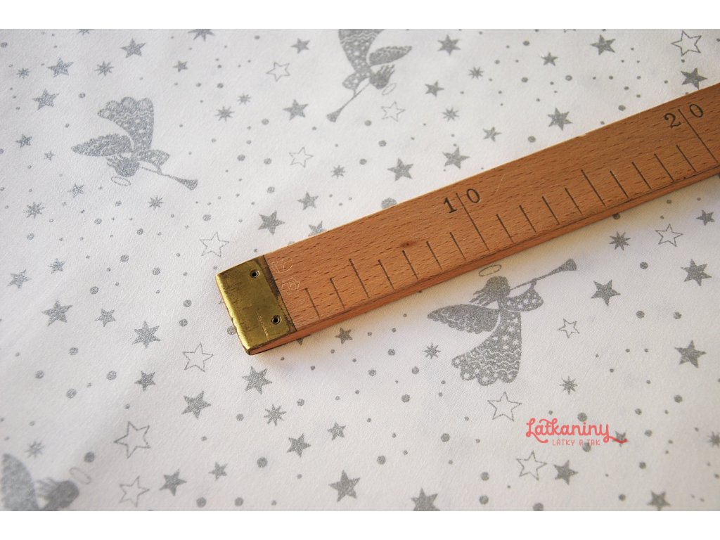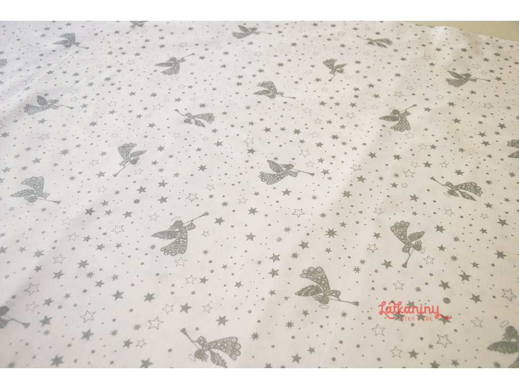 Motivem látky je stříbrný anděl, andílek s hvězdami, který je rozesetý po čistě bílém podkladu. Prostě VÁNOCE!