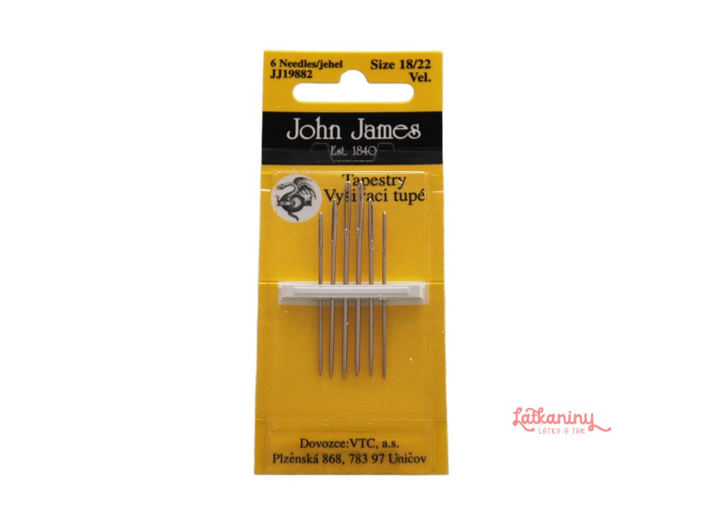 Tato sada 6 vyšívacích jehel pro ruční šití obsahuje kvalitní tupé jehly s kulatou špičkou a větším navlékacím očkem ve velikosti 18-22. Délka jehel 40,5-48,5 mm, průměr jehel 0,94-1,27 mm. Jedná se o anglický výrobek.