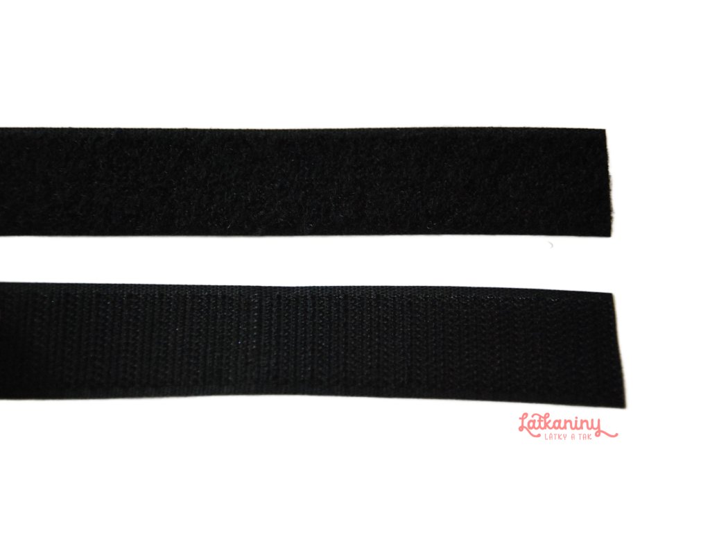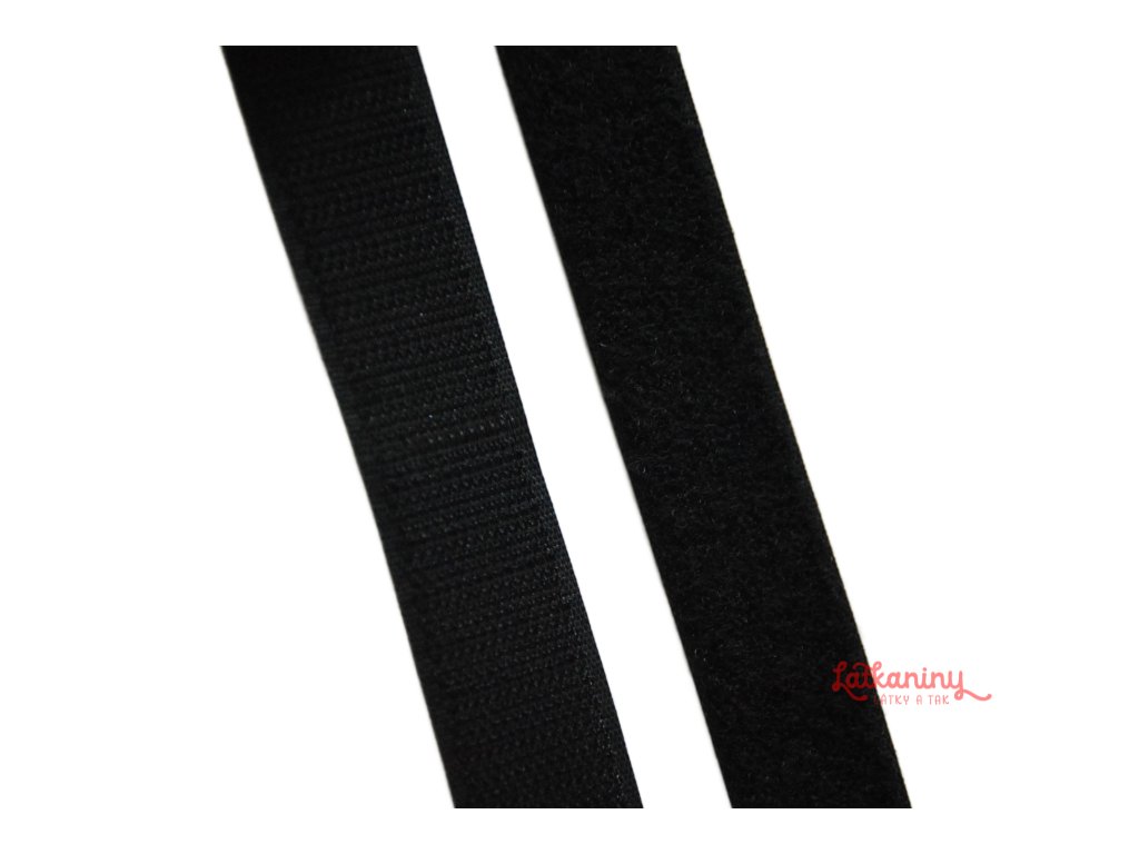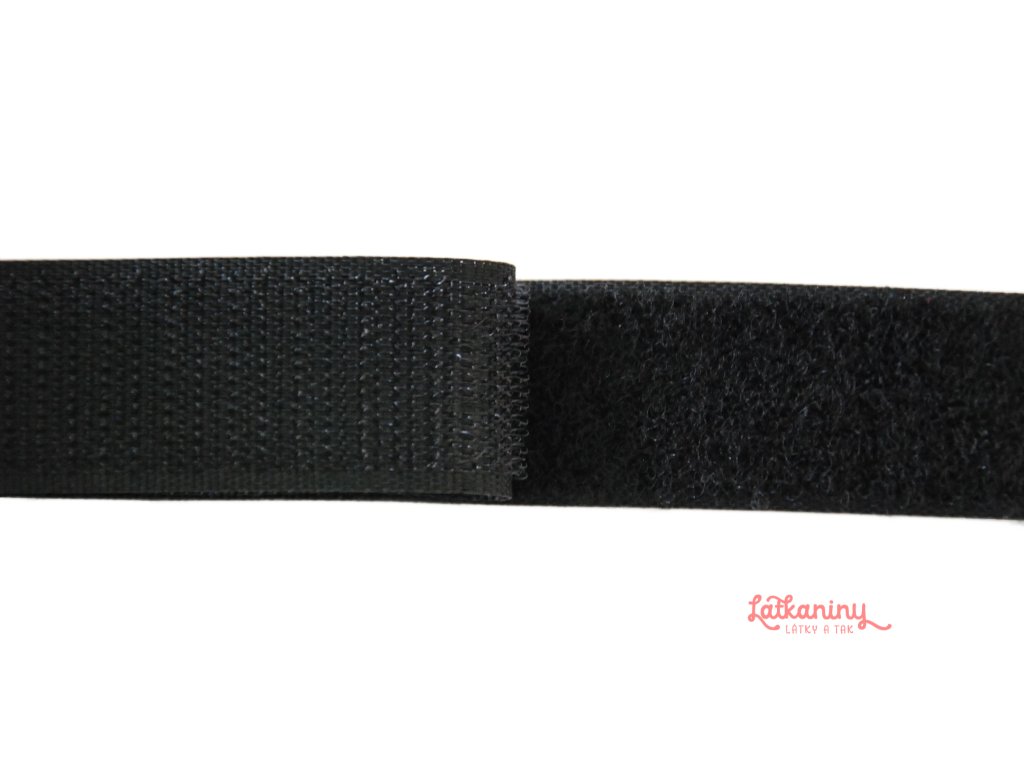 Suchý zip kompletní v šíři 25 mm v černé barvě. Suchý zip obsahuje jeden díl smyčkový a jeden díl háčkový.