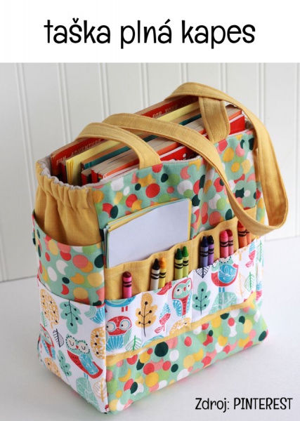 - použijeme-li lehčí látku, nezapomeneme vyztužit svrchní díly. Dosáhneme tak lepšího vzhledu a tašku to zpevní.