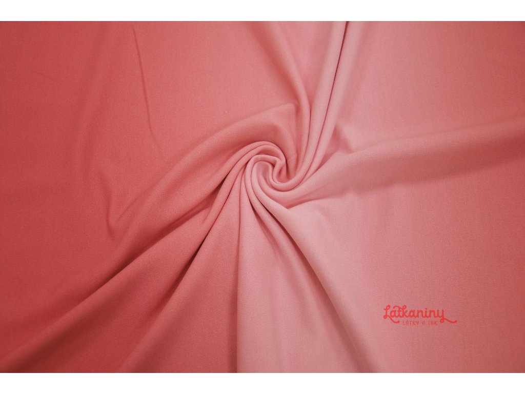 Látka je v odstínech dvou barev, a to růžové a bílé. V pásmech přechází růžová do bílé a naopak.