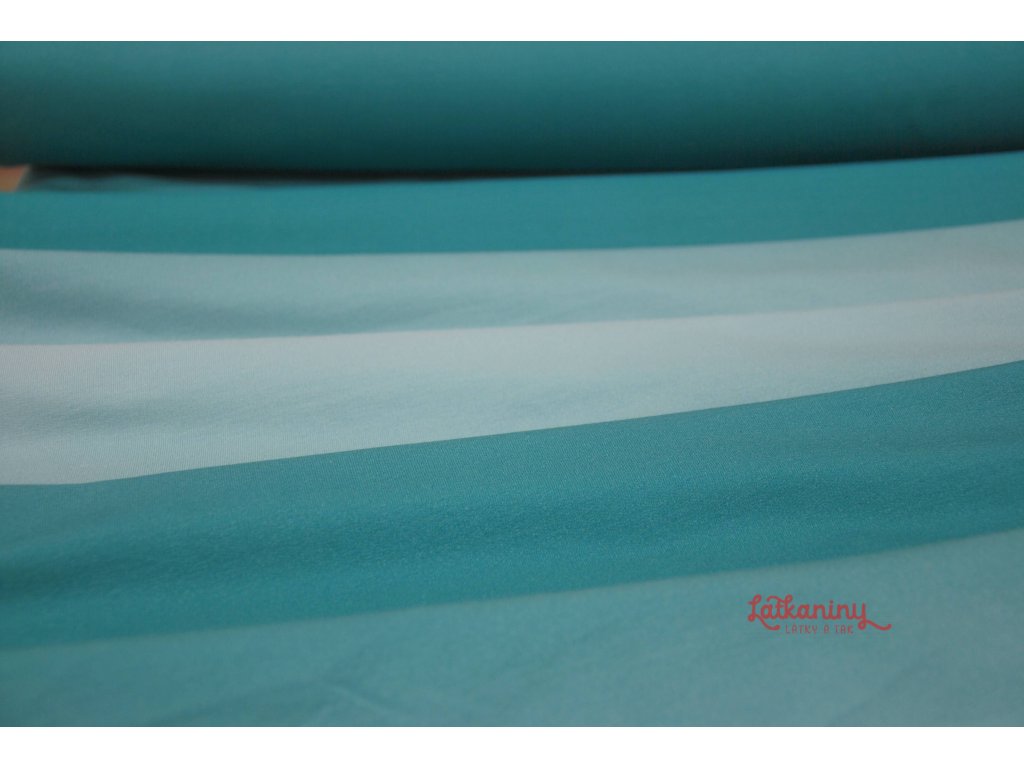 Látka je v odstínech dvou barev, a to smaragdové a bílé. V pásmech přechází smaragdová do bílé a naopak.